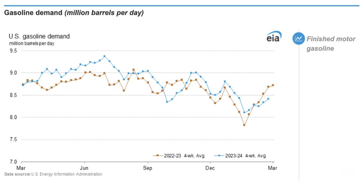 10- Los precios del gas en EE.UU. han bajado una media del 6% interanual, pero la demanda se ha reducido entre un 1% y un 3% respecto al año pasado. Esto también apunta a una ralentización del crecimiento económico estadounidense.