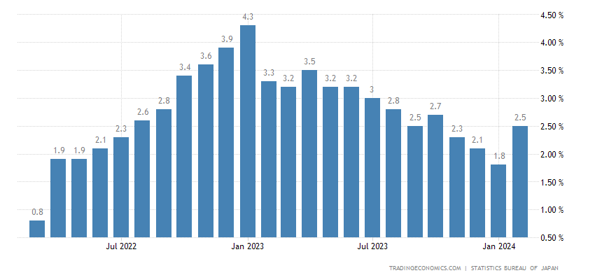 3- El índice de precios al consumo subyacente de Tokio (Japón) subió un 2,5% interanual en febrero de 2024, registrando la lectura más alta en cuatro meses, en línea con las expectativas.