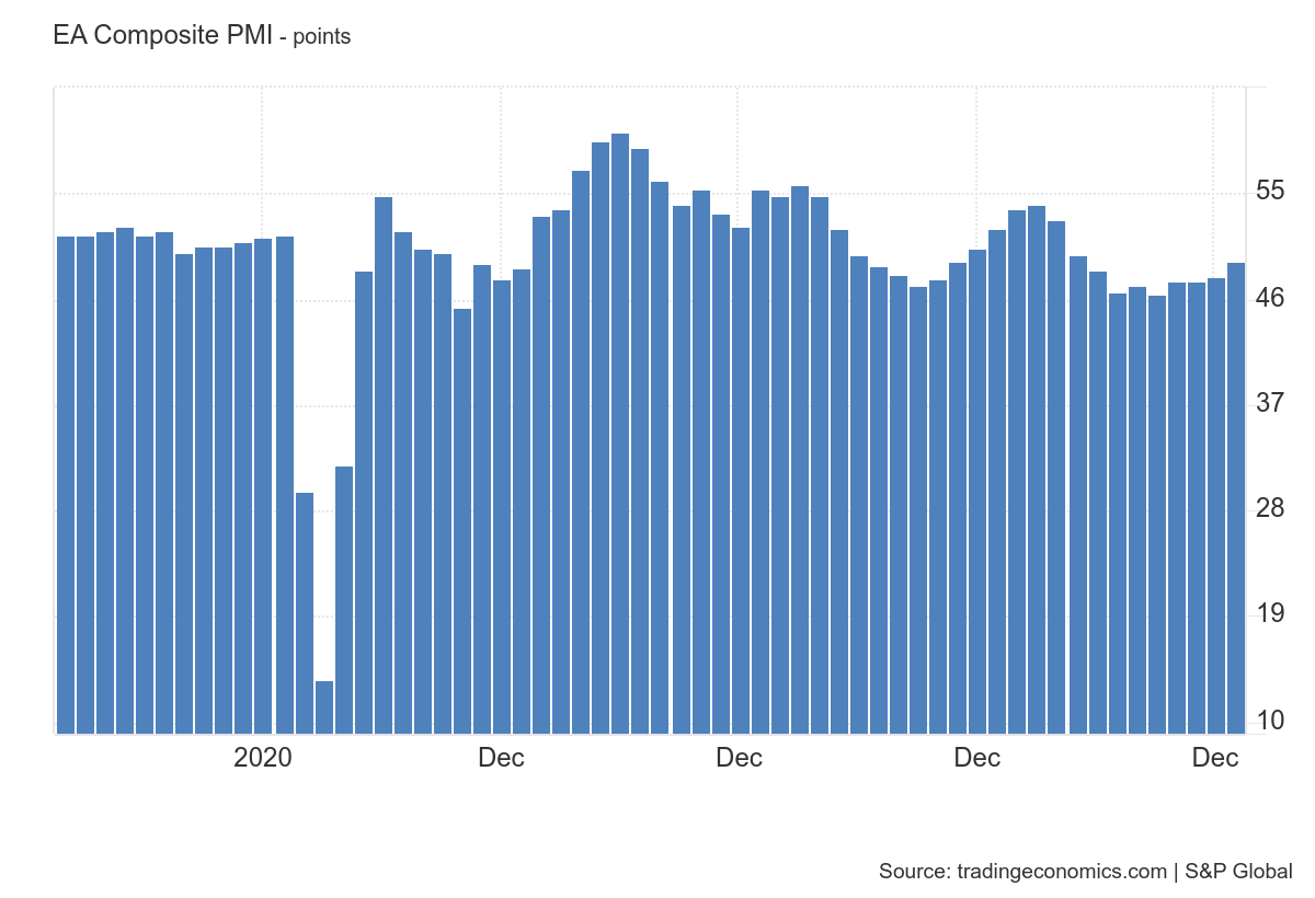 El índice PMI compuesto HCOB de la zona euro se revisó al alza hasta situarse en 49,2 en febrero de 2024, por encima de la estimación preliminar de 48,9 y superando el 47,9 de enero. El PMI fue el más alto en ocho meses, lo que indica una casi estabilización de la economía de la zona euro, con la actividad del sector servicios mostrando un crecimiento por primera vez desde julio del año pasado. Sin embargo, la producción manufacturera siguió contrayéndose. Entre las mayores economías del bloque, se observaron sólidas expansiones en Irlanda y España, mientras que Italia experimentó un modesto crecimiento.