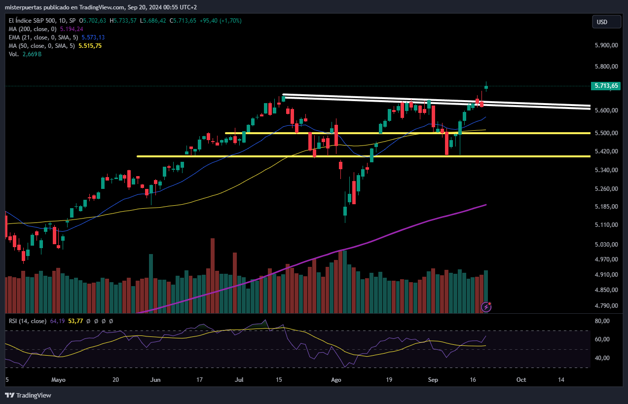 El S&P500 ha logrado superar el nivel de los 5700 puntos en el día de hoy. ¡NUEVOS MÁXIMOS HISTÓRICOS!