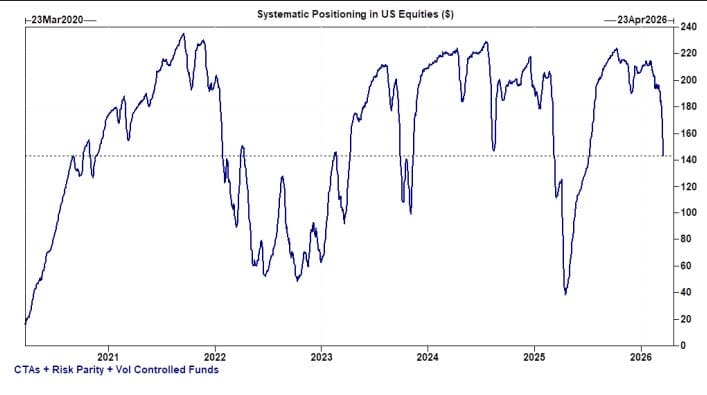 Se estima que los CTAs vendieron -147.000M de dólares en renta variable global el mes pasado // -66.000M la semana pasada.