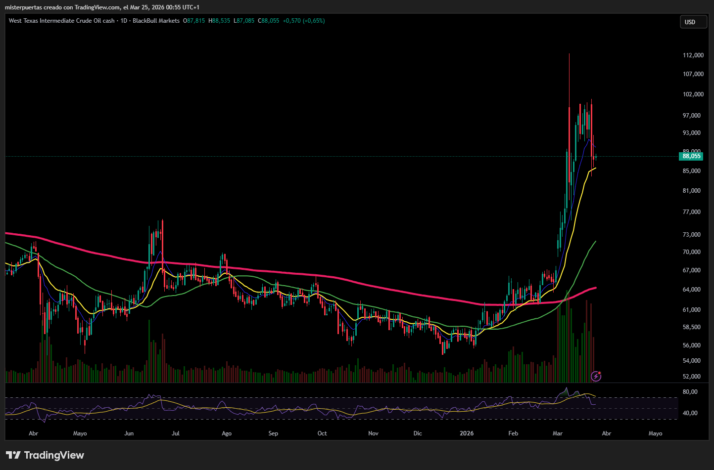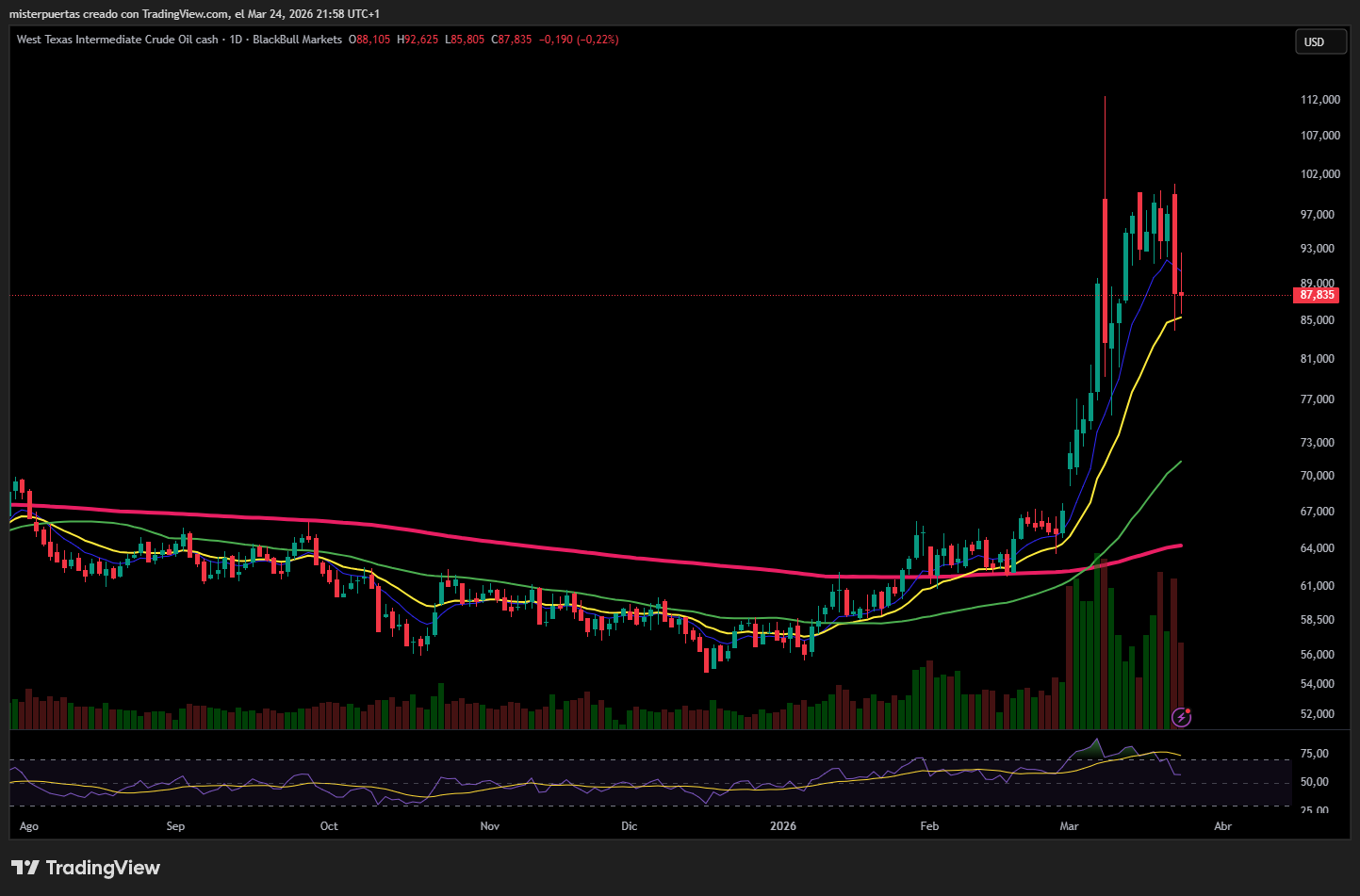 El WTI cerró por debajo de los 90 dólares, aunque tuvo momentos de tensión durante el día a medida que el conflicto no terminaba.