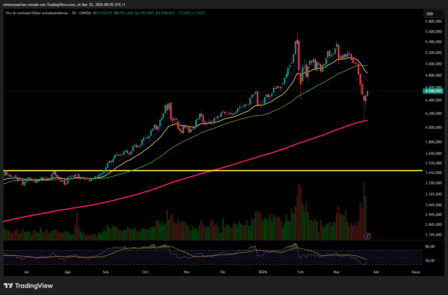 A pesar del alza del dólar, el oro se mantuvo estancado, aparentemente anclado en los 4.400 dólares.