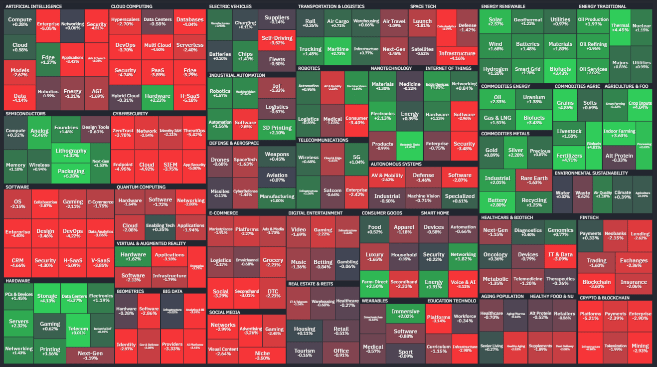 Dentro de la tecnología, el software y la ciberseguridad fueron claros perdedores, mientras que los semiconductores y las telecomunicaciones ganaron.
