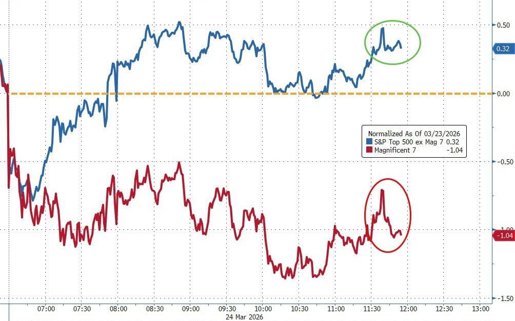 Las acciones de las Mag7 tuvieron un rendimiento muy inferior al del S&P 493 durante la jornada.