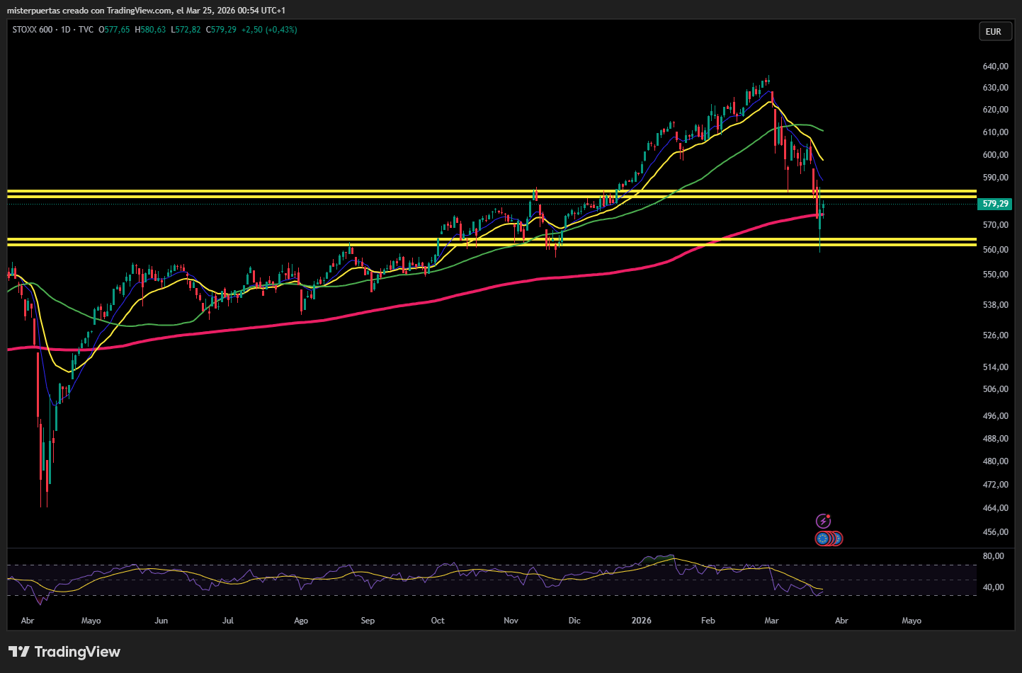 El índice paneuropeo STOXX 600 subió un 0,4% hasta los 579,28 puntos, tras haber llegado a caer hasta un 0,7% durante la sesión.