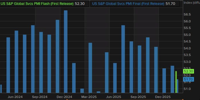 PMI de Servicios: 51,2 (est. 52,8; prev. 53,9)