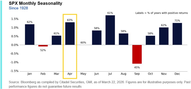 Desde 1928, abril ha sido el segundo mejor mes para la rentabilidad del S&P 500, con una ganancia promedio del +1,3%.