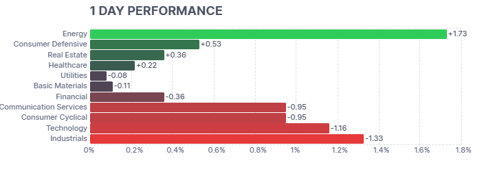 Por el lado positivo, las acciones energéticas fueron el mayor impulso para el mercado, subiendo un 0,7%, en línea con un repunte del 2% en los precios del petróleo.