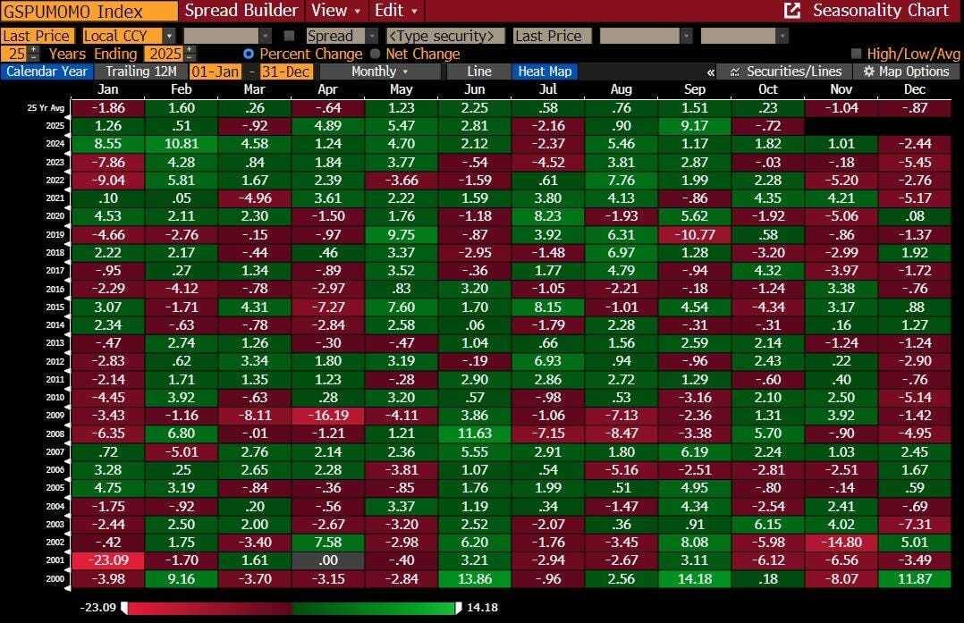El factor Momentum podría seguir corrigiendo, ya que noviembre–enero es históricamente el peor periodo estacional para este tipo de estrategias.