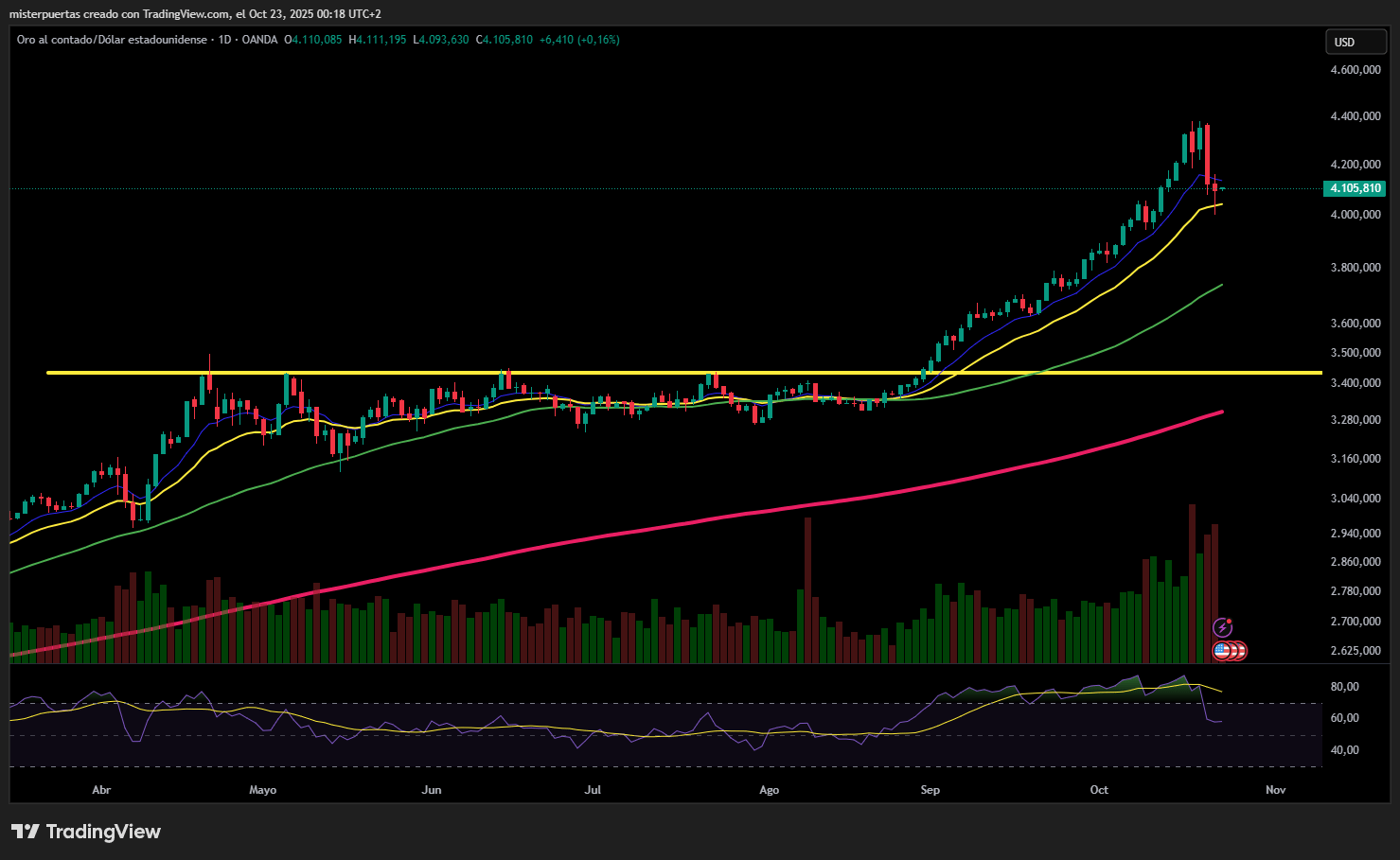 El oro cerró ligeramente a la baja, superando los 4.100 dólares después de marcar mínimos con una caída del 2%. Patrón similar en la plata, con los 48 dólares actuando como fuerte soporte (por ahora).